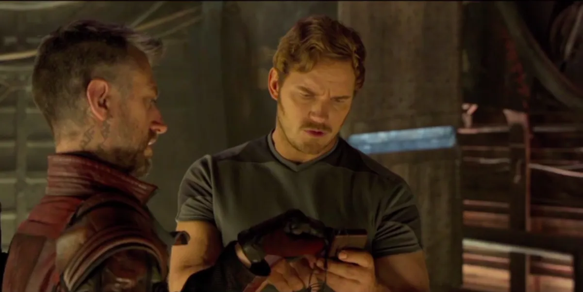 The scene happens after the Guardians face Thanos in Knowhere and lose, so tensions are understandably high. Star-Lord wants to play Kiss’ “New York Groove” in order to get into a groove of his own, but Drax would prefer not to have the same song playing over and over again, which seems fair.