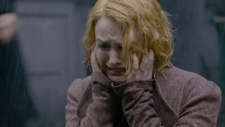 Tina, wand in hand, freezes them midair. “He needs to control his temper,” she says, flicking her wrist and retaliating with a quick burst of white light that sends Theseus toppled backwards into a chair, his hands bound by the mystical configuration. “I think that might have been the best moment of my life,” Newt admits, grinning, before a tap of his wand effortlessly reassembles the strewn about packages.