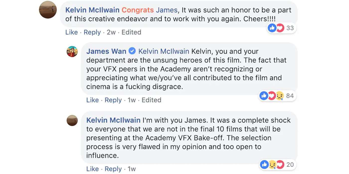 On his official Facebook account, Wan posted a short message in light of the release of Aquaman. Since then, people have been flocking to his page to send congratulatory messages, and one of the latest came from visual effects supervisor for the film Kelvin McIlwain, who congratulated the director for a job well done (the pair previously worked on 2015’s Furious 7). Wan then responded to the message by calling McIlwain and his team the “unsung heroes” of the project and saying that it’s a “disgrace” that their peers in the Academy aren’t recognizing that.